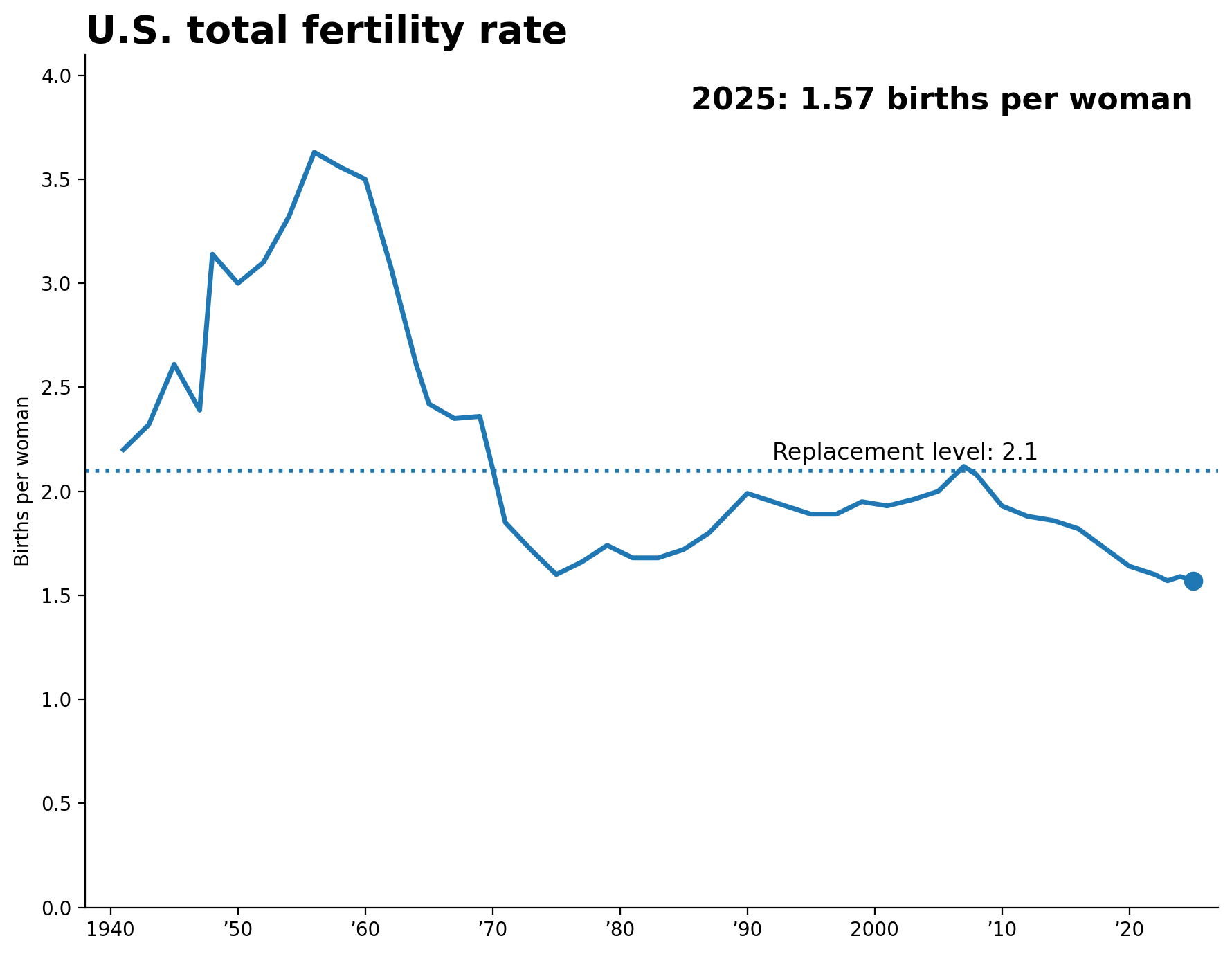 Fig. B. U.S. total fertility rate, 1941–2025.